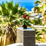 The apartment provides coffee/tea making equipment and a full kitchen with a microwave oven, a fridge, and kitchenware. The 90 m^2 apartment is located within a 15-minute drive of Tenerife Sur airport. The accommodation boasts access to an aqua park and a golf course, along with luxury amenities like a solarium. Guests may also engage in activities such as water sports activities, windsurfing, and diving.